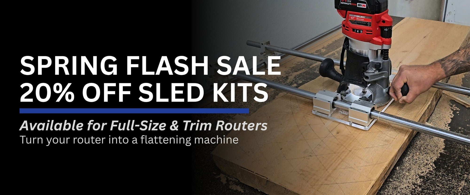 Flatten your wood boards and slabs using our trim router or full-size router sled kits